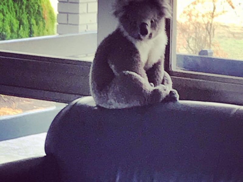 Animal foi flagrado sobre sofá em escola técnica na cidade de Victoria. Funcionários de uma escola técnica na Austrália foram surpreendidos na manhã de terça-feira (27) por um coala sentado sobre um sofá. Segundo o funcionário Fran Clarke, provavelmente entrou no prédio na noite anterior. Ele a princípio não queria