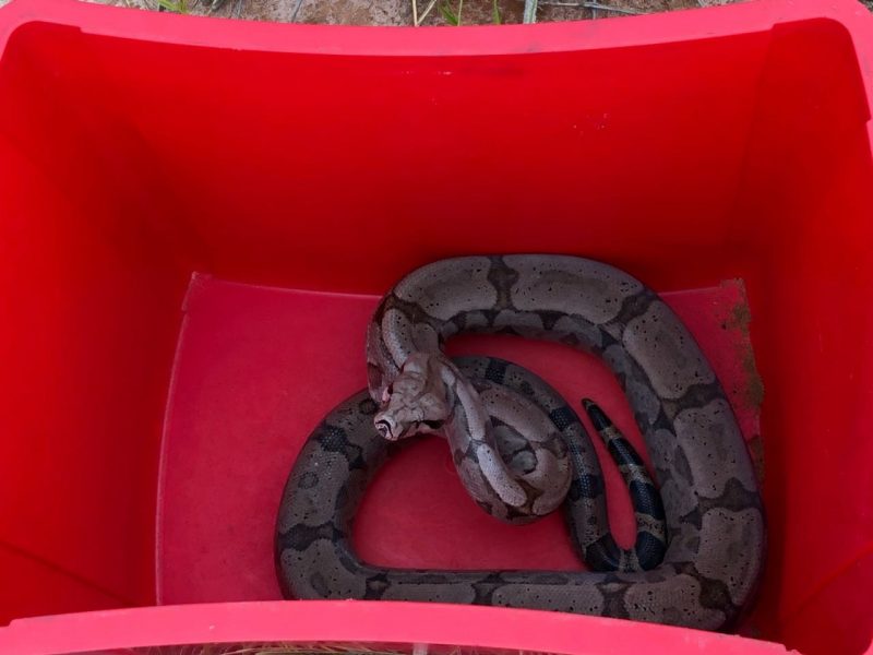 Corpo de Bombeiros captura jiboia no quintal de casa em Marília