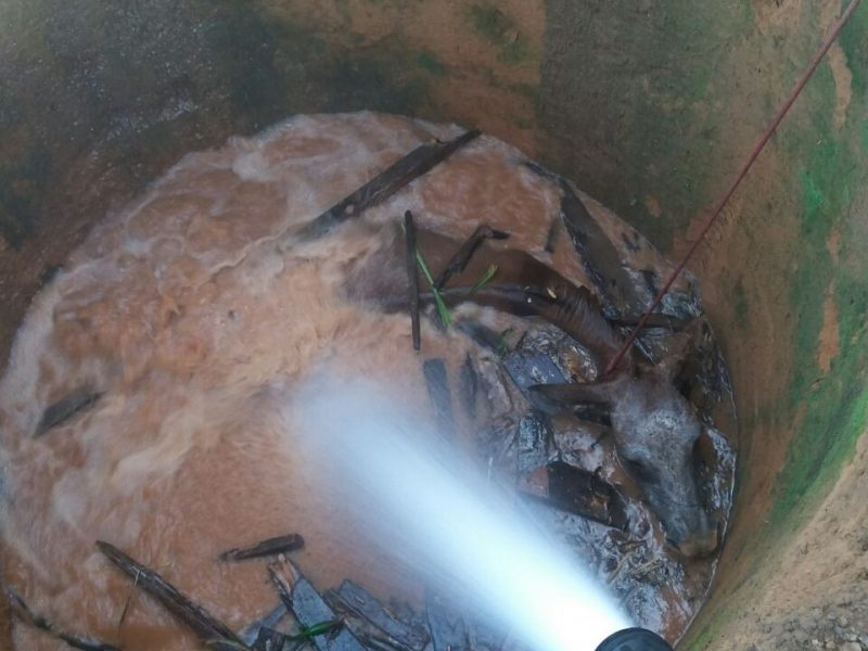 Sete bombeiros foram ao local e encheram o poço com água, para facilitar a saída do burro de dentro do buraco. Poço estava coberto por tábuas de madeira apodrecidas.