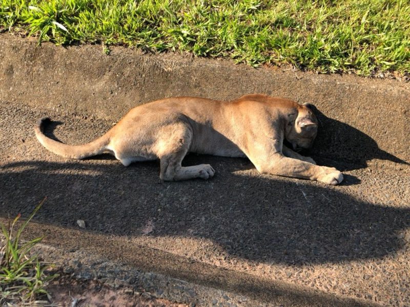 Onça parda é resgatada viva após ser atropelada por moto em Penápolis