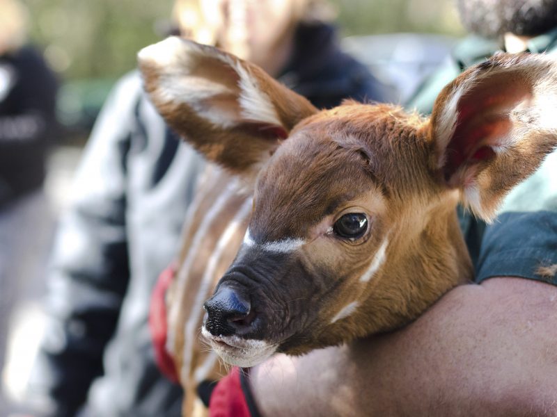 Filhote de bongo, espécie ameaçada de extinção, nasce nos EUA; veja fotos
