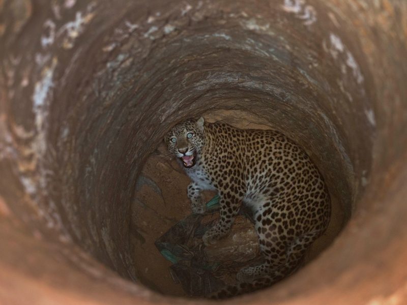 Fêmea de leopardo é resgatada após cair em poço na Índia