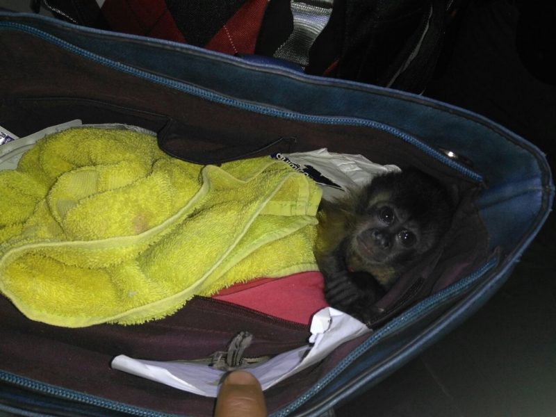 Mulher é flagrada duas vezes no mesmo dia ao transportar macacos em mochilas