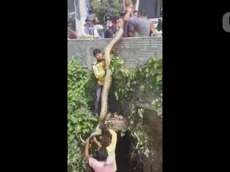 Sucuri de 4m é resgatada após ser agredida e carregada em avenida por moradores; VÍDEO