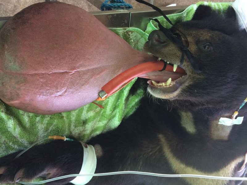 A operação para remover a língua de três quilos do urso Nyan htoo