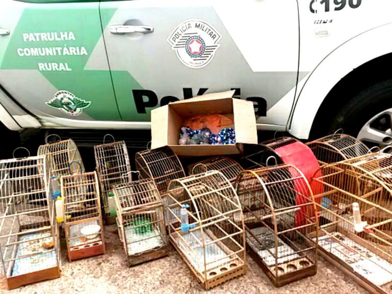 Polícia Ambiental encontrou 18 aves na casa dos suspeitos, em Barra Bonita (SP). Os dois foram multados em R$ 8,5 mil e pássaros resgatados.