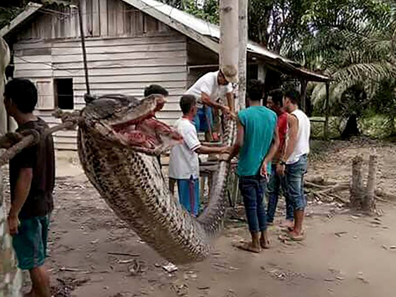 Píton de 7,8 metros de comprimento foi morta após atacar indonésio e virou refeição da comunidade.