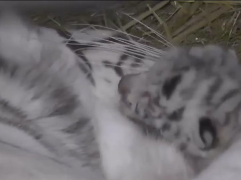 Raro filhote de tigre branco brinca com a mãe e se amamenta na Rússia; vídeo