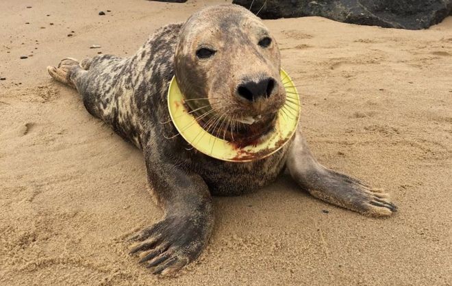 Após seis meses de tentativas, voluntários conseguem resgatar foca com anel de plástico no pescoço