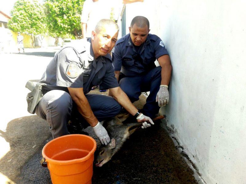 Policiais militares resgatam veado catingueiro em bairro de Quatá