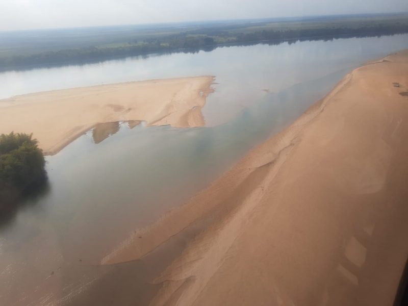 Um sobrevoo foi realizado para analisar a situação de alguns pontos do rio, que está em alerta de crise hídrica. Uma ação em conjunto com os policiais militares ambientais dos três estados deve ser feita para garantir a segurança dos cardumes expostos. Leito do rio Paraná com nível de água