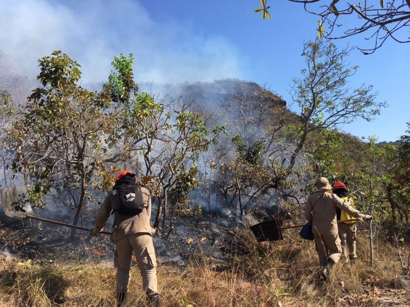 Bombeiros combatem fogo em unidade de conservação e no Parque de Chapada dos Guimarães (MT)