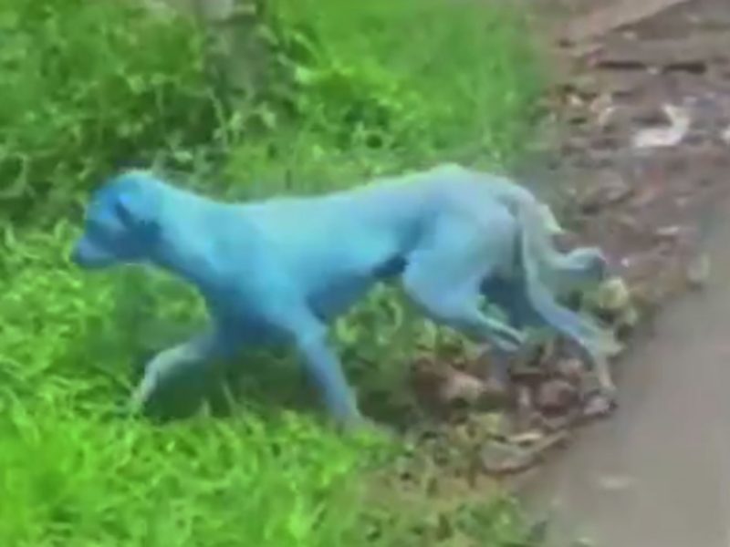Cães ficam azuis após contato com resíduos químicos em rio na Índia
