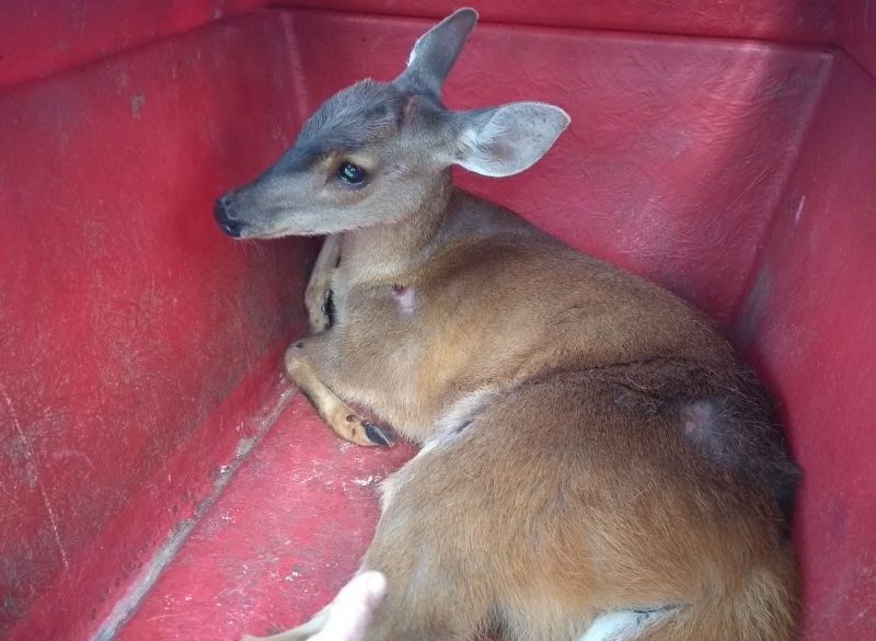Veado-catingueiro atropelado é resgatado em bairro de Pirajuí