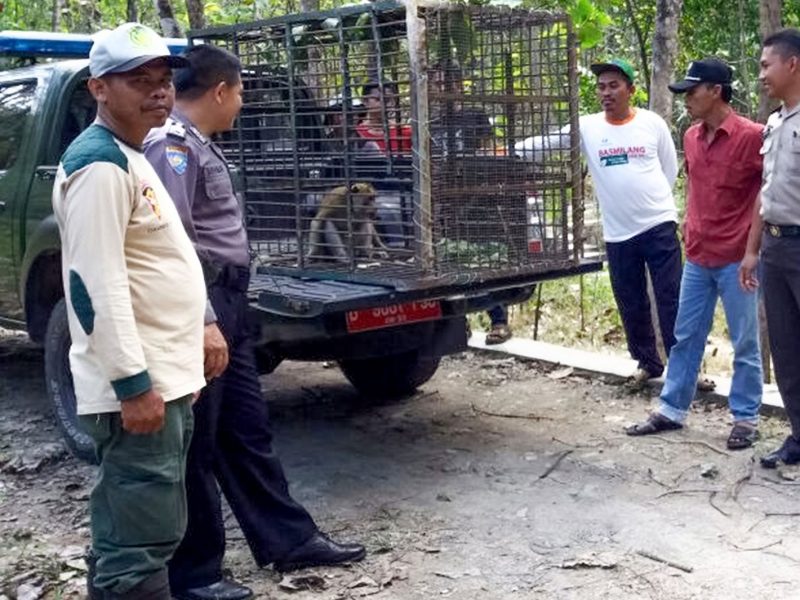 Animais destroem plantações para se alimentar e já morderam 11 pessoas este ano. Dezenas de soldados, policiais e caçadores patrulham distrito de Boyolali em busca dos macacos de cauda comprida.