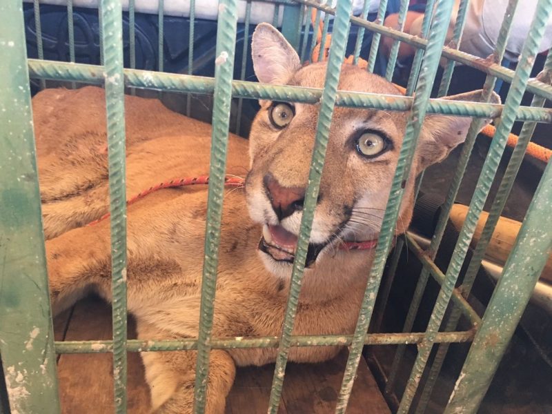 Onça-parda é encontrada ferida em pasto e bombeiros fazem resgate em MT