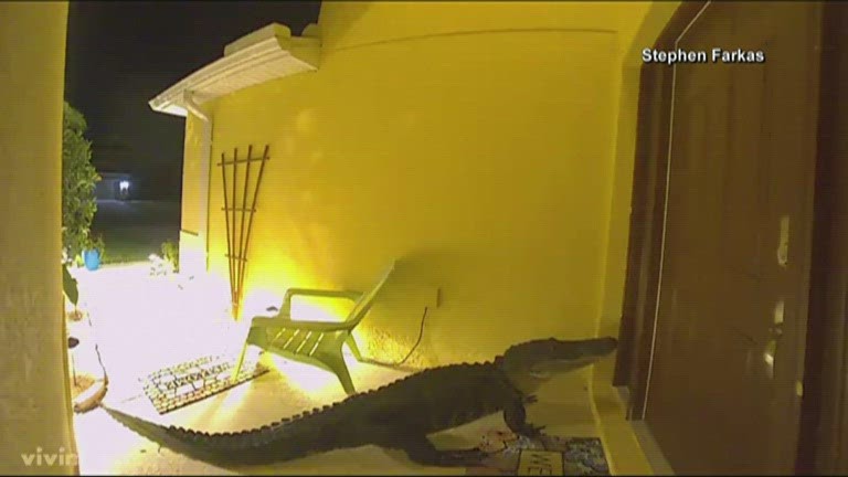 Jacaré é filmado ‘espiando’ casa na Flórida; veja vídeo