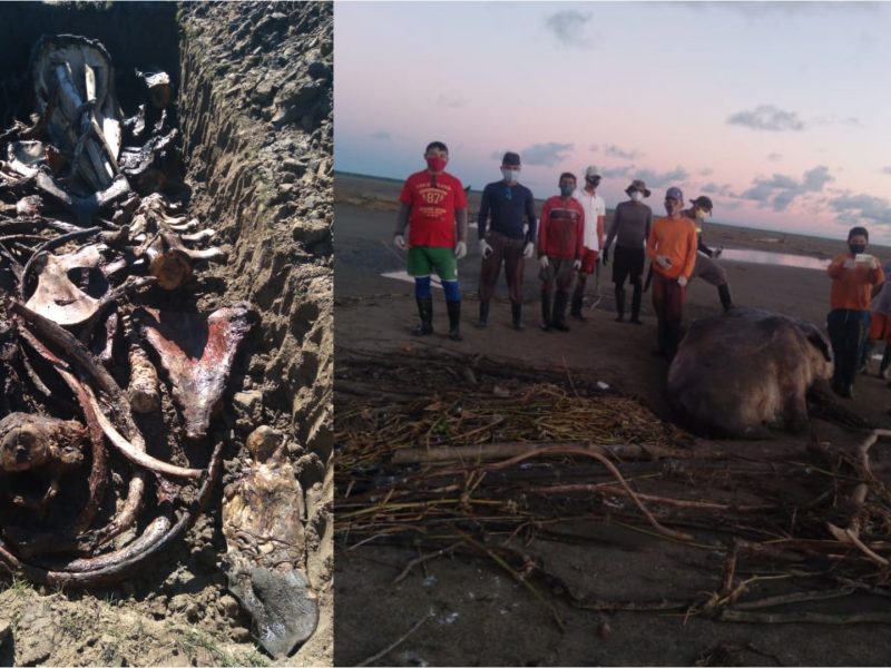 Cachalote que encalhou na costa do AP é enterrada para que ossada seja exposta em museu
