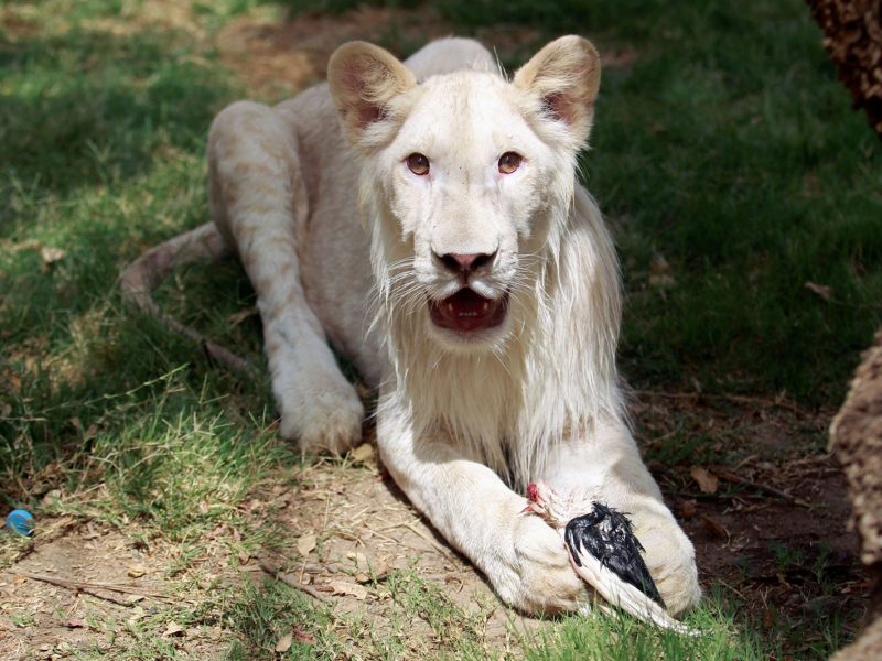 Zoológico do Iraque exibe filhote raro de leão branco