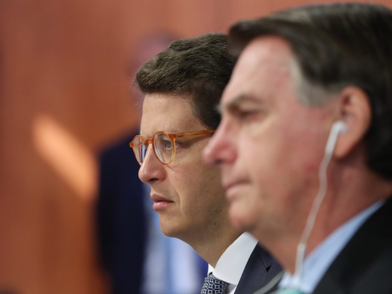 Por causa da extinção do conselho que dirigia o fundo, anunciada na gestão do ministro Salles, Alemanha e Noruega interromperam doações. Desde 2019, sem uma equipe que dê as diretrizes administrativas, nenhum novo projeto foi aprovado. Bolsonaro e o ministro do Meio Ambiente, Ricardo Salles, na Cúpula dos Lideres Sobre