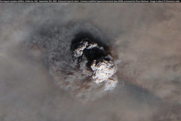 Imagem de satélite mostra grande nuvem de fumaça causada por incêndio na Califórnia