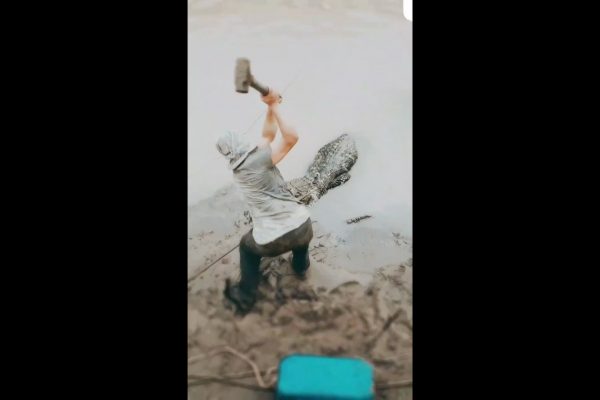 VÍDEO: Jacaré-açu é abatido a tiro e marretadas no rio Madeira em Porto Velho