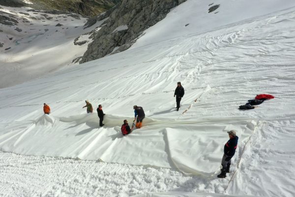 Itália embrulha geleira para proteger neve dos Alpes do aquecimento global