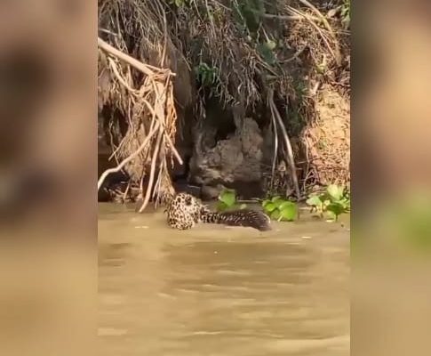 Onça-pintada trava batalha com jacaré na água no Pantanal mato-grossense e perde a luta; veja vídeo