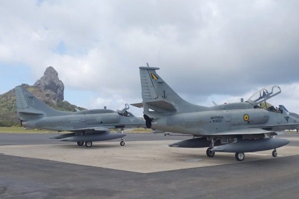 Dois jatos fizeram o reabastecimento na ilha, na tarde desta segunda-feira (11). Aeronaves integram grupamento que realiza operação no litoral nordestino. Aviões da Marinha…