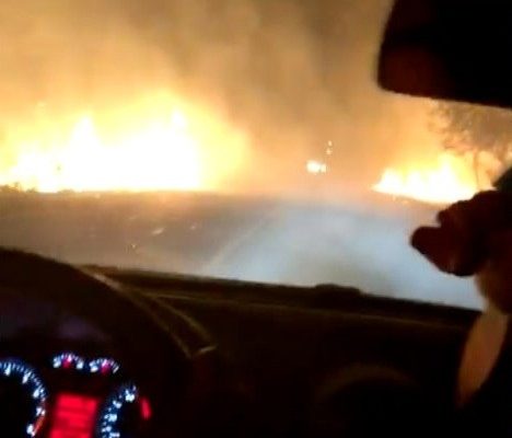 Motorista passa em corredor de fogo formado por queimada às margens de rodovia; VÍDEO