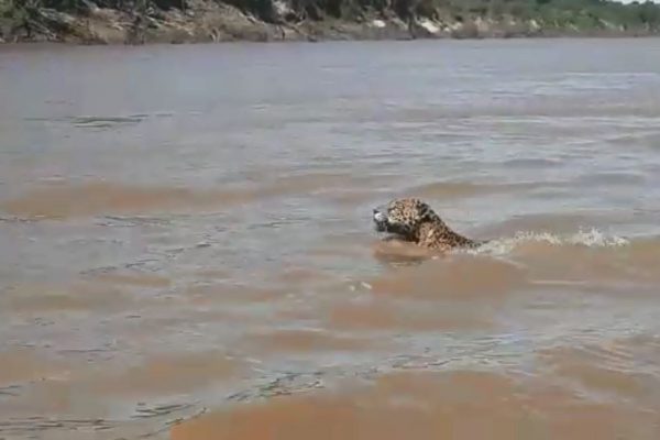 Vídeo: Onça-pintada enfrenta correnteza de rio para cruzar fronteira entre Brasil e Bolívia