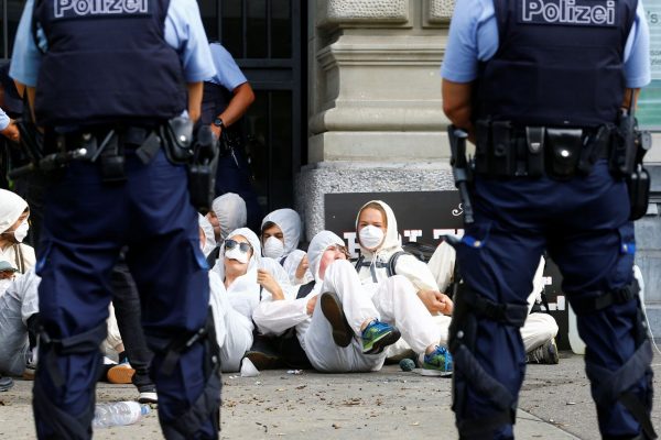 Ativistas do clima são presos por bloquear entrada de banco suíço durante protesto