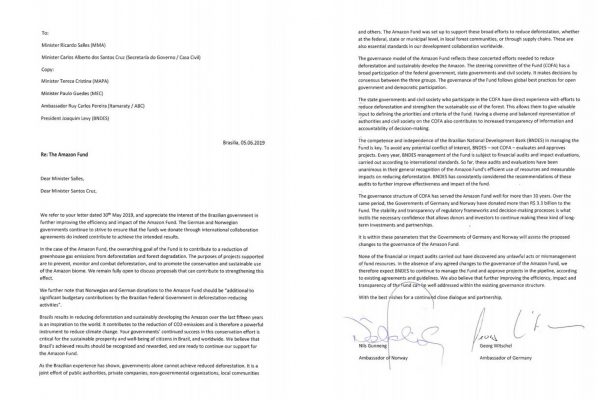 Noruega e Alemanha se posicionam contra a proposta de mudança do governo para o Fundo Amazônia