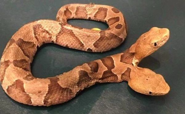 Uma cobra da espécie Agkistrodon contortrix foi encontrada no Estado da Virgínia. Segundo pesquisadores, cada cabeça tem um esôfago e uma traquéia, mas elas compartilham o…