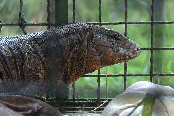 Lagarto socorrido com resíduos de piche é devolvido à natureza