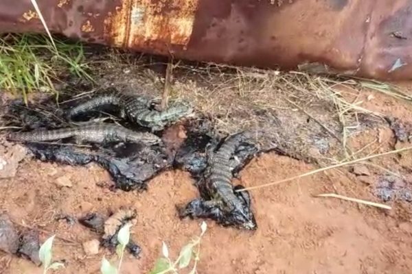 Equipe fazia limpeza em terreno quando mexeu reservatório e répteis foram atingidos por mistura. Veterinários cuidam dos animais em hospital de Rio Preto (SP). Bombeiros resgatam…