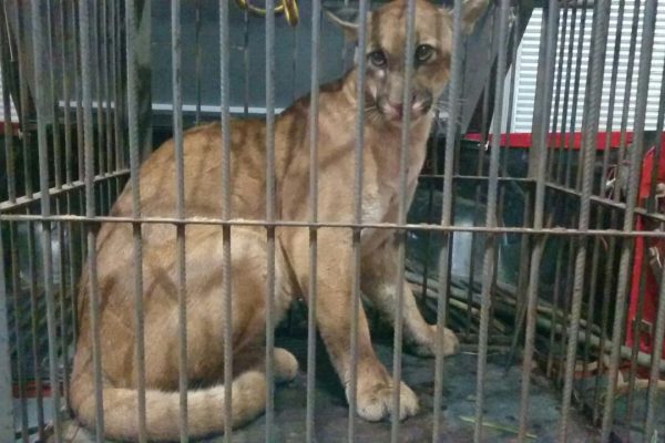 Onça parda é resgatada em cima de árvore em bairro de Votuporanga