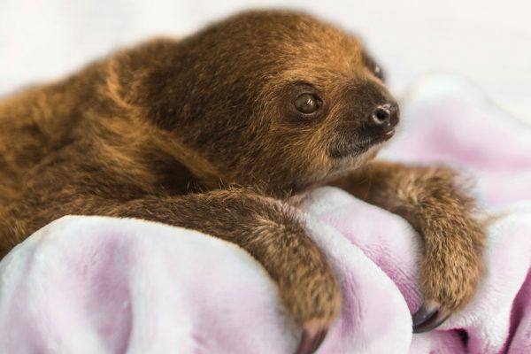Filhote de preguiça é apresentada a visitantes de aviário em Pittsburgh